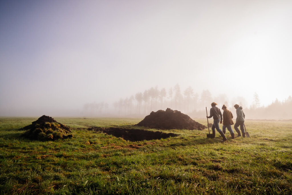 Im Zentrum steht das Lange Haus – Bühne für Konzerte, Literaturfeste, Vorträge, Filmabende und kreative Workshops. Gleichzeitig lebt in Nantesbuch der achtsame Umgang mit der Natur: Auf 320 Hektar werden Moore wiedervernässt, Wiesen und Wälder renaturiert, die Artenvielfalt gefördert. Unser Fokus? Lebendige Böden – sie sind die Grundlage für Artenvielfalt und ökologisches Gleichgewicht.